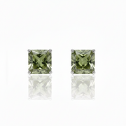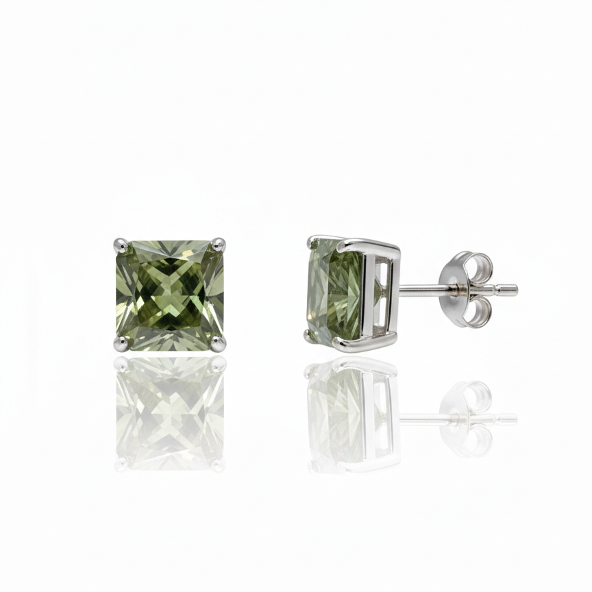 Estos aretes elaborados en plata .925 con baño de rodio destacan por su diseño limpio y contemporáneo. Cada pieza presenta una piedra central de peridoto, reconocida por su vibrante tono verde, que aporta frescura y luminosidad al diseño.