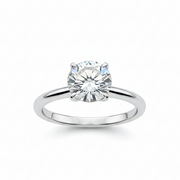 Un anillo sofisticado elaborado en oro blanco 14k, con una impresionante moissanita de 3 ct en corte redondo que destaca por su brillo excepcional. Su diseño solitario ofrece un look moderno y refinado que nunca pasa de moda.