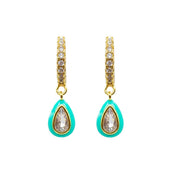 Explora la elegancia contemporánea de nuestro piercing de arracada, diseñado con un estilo único para complementar tu look con sofisticación. La arracada tiene una medida de 0.8 cm de largo, mientras que el dije en forma de gota mide 0.8 cm, dando un total de 1.6 cm de largo. El dije de gota está delicadamente esmaltado en color verde menta, destacando las zirconias blancas que añaden un brillo sutil y elegante.