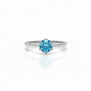 Descubre la elegancia sutil y el brillo encantador de este anillo elaborado en plata .925 con baño de rodio, diseñado para destacar por su delicadeza y sofisticación. Su montadura de 6 uñas realza una piedra central de corte redondo, disponible en dos opciones: zafiro rosa o blue diamond, ambas piedras cultivadas en laboratorio.