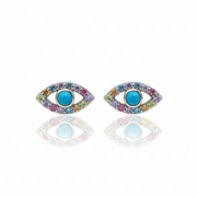 Un diseño moderno y lleno de simbolismo. Estos aretes de plata .925 con baño de rodio destacan por su acabado pulido y duradero, ofreciendo un brillo impecable en cada uso. Su diseño en forma de ojo incorpora como piedra central una turquesa cultivada, rodeada de delicados topacios de colores que aportan luminosidad y un contraste vibrante. Con una medida total de 1.5 cm de largo y 0.8 cm de ancho, logran un equilibrio perfecto entre elegancia, color y presencia.