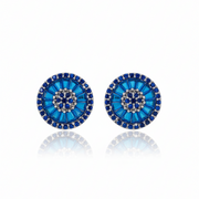 Estos aretes destacan por su diseño sofisticado y su intenso color azul, logrando una pieza que combina elegancia y brillo en un formato versátil y moderno. Su forma redonda, realzada por zirconias en distintos cortes, aporta un efecto visual dinámico y refinado.