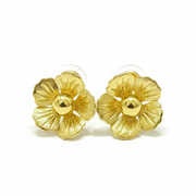 Estos aretes elaborados en chapa con baño de oro de 18K presentan un delicado diseño de flor, con pétalos detallados que aportan un acabado más realista y elegante. Su tamaño sutil los convierte en una pieza ideal para el uso diario, añadiendo un toque femenino y natural a cualquier look.