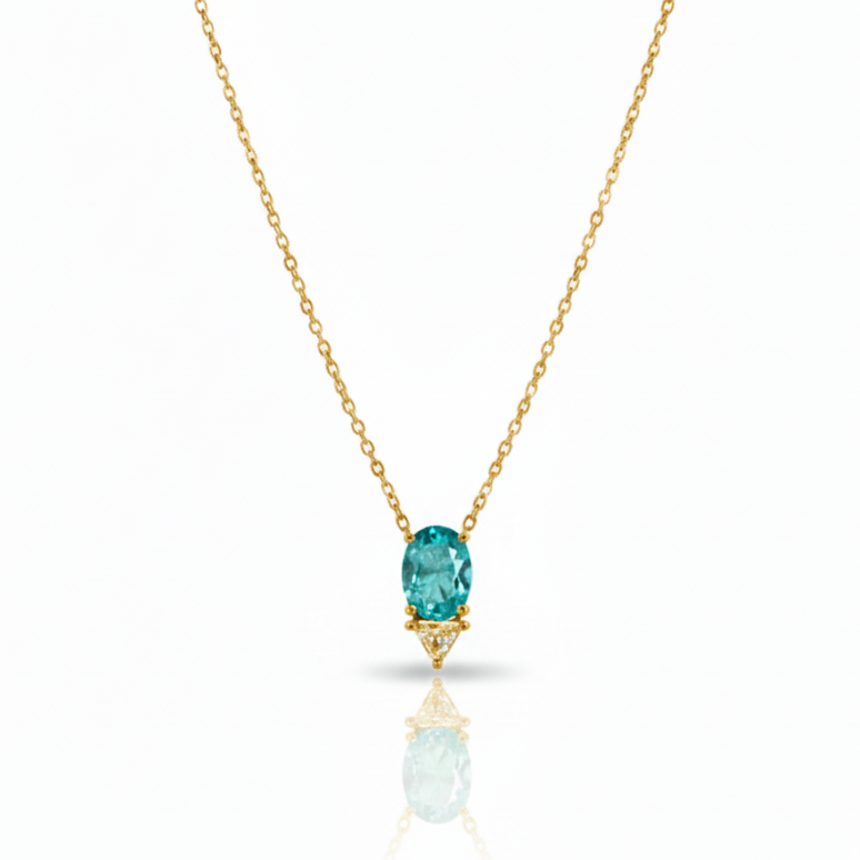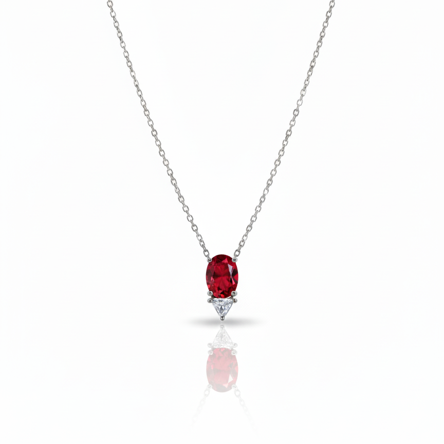 Collar de Plata .925 con Piedra Oval y Toque Triangular