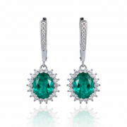 Estos aretes elaborados en rodio presentan un diseño elegante que resalta una zirconia central en tono tipo Paraíba, en corte redondo, rodeada por un halo de zirconias que potencia su brillo y sofisticación. Una pieza clásica y luminosa, ideal para ocasiones especiales o para aportar un toque de color refinado.