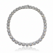 Este choker elaborado en rodio presenta un elegante diseño geométrico, compuesto por eslabones en forma cuadrada que enmarcan un detalle central redondo con zirconia, aportando equilibrio y sofisticación. Cuenta con broche tipo caja, que brinda mayor seguridad y un acabado refinado, ideal para ocasiones especiales o looks de noche.