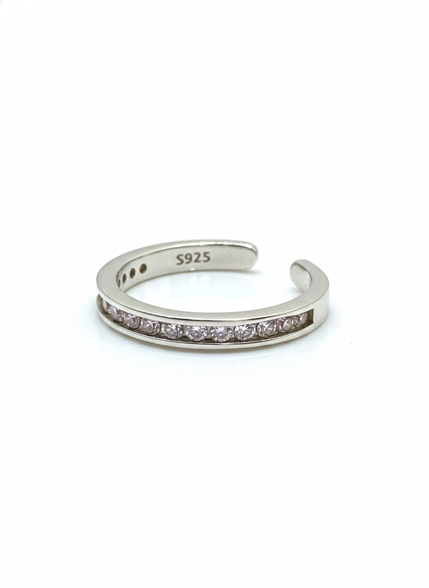 Esta churumbela está elaborada en plata .925, diseñada para ofrecer comodidad y versatilidad gracias a su formato ajustable. Su diseño incorpora moissanitas cuidadosamente engastadas, que aportan un brillo intenso y sofisticado. Es una pieza práctica y elegante, ideal para adaptarse a distintas tallas y estilos, ya sea usada sola o combinada con otros anillos.