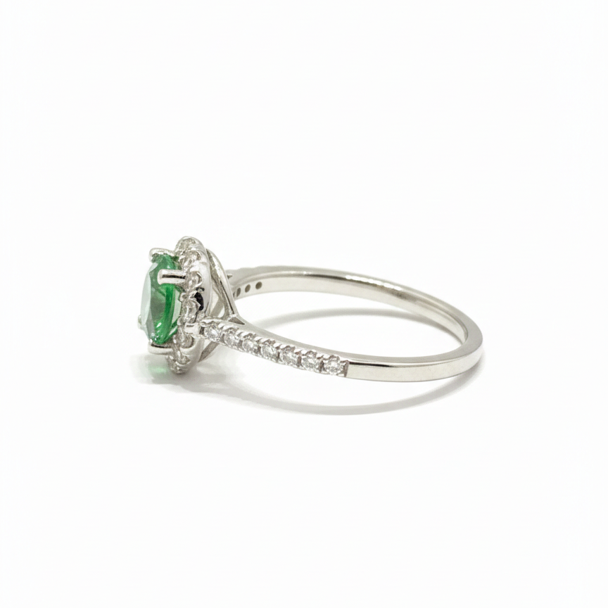 • Piedra central: Esmeralda cultivada en laboratorio (Tono verde vibrante).
