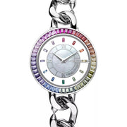 Una explosión de color y modernidad. Diseñado para quienes no temen destacar, este modelo "Rainbow" es una obra de arte cromática. La pureza del acero pulido sirve como el lienzo perfecto para un espectáculo de color que ilumina tu muñeca con cada movimiento.
