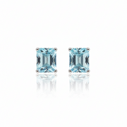 Estos broqueles elaborados en plata .925 con baño de rodio destacan por su elegancia geométrica y su claridad impecable. Al centro presentan un topacio azul cultivado en laboratorio en corte esmeralda, cuyas facetas rectangulares y escalonadas proyectan una profundidad sofisticada y un brillo cristalino.