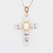 Cruz de Chapa con Baño de Oro, Concha Nácar y Zirconias AAA