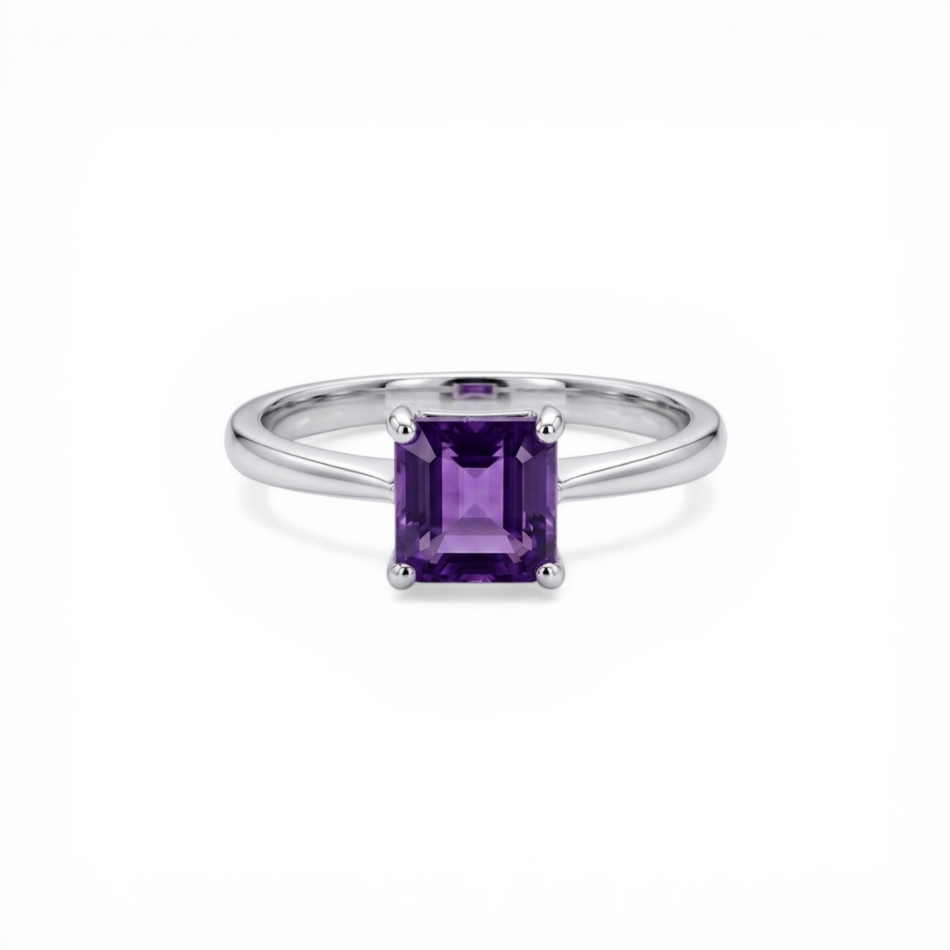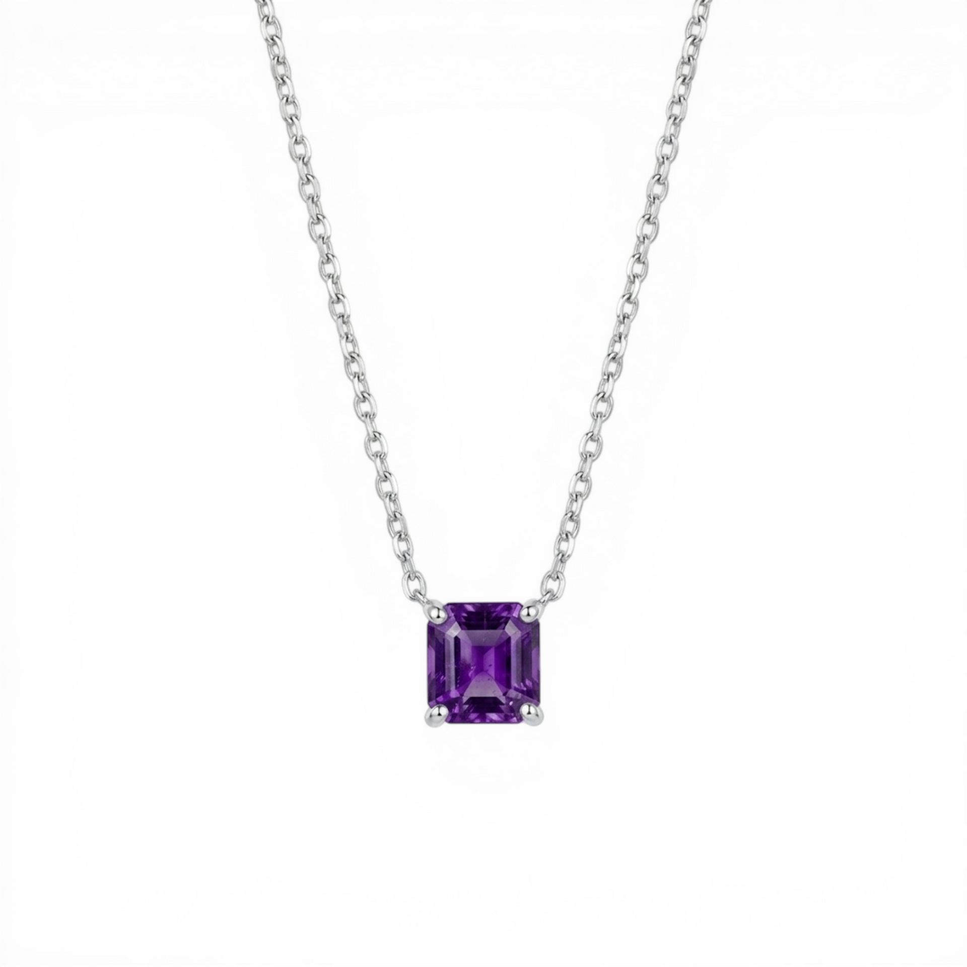 El Set Amatista es una propuesta de diseño equilibrado y sofisticado, elaborado en plata .925 con un impecable baño de rodio. Este conjunto destaca por la simetría perfecta de sus amatistas cultivadas en laboratorio, seleccionadas por su intenso color violeta y su claridad cristalina. El corte cuadrado (Princess) de las gemas aporta una estructura moderna y limpia que maximiza el brillo natural de la piedra.