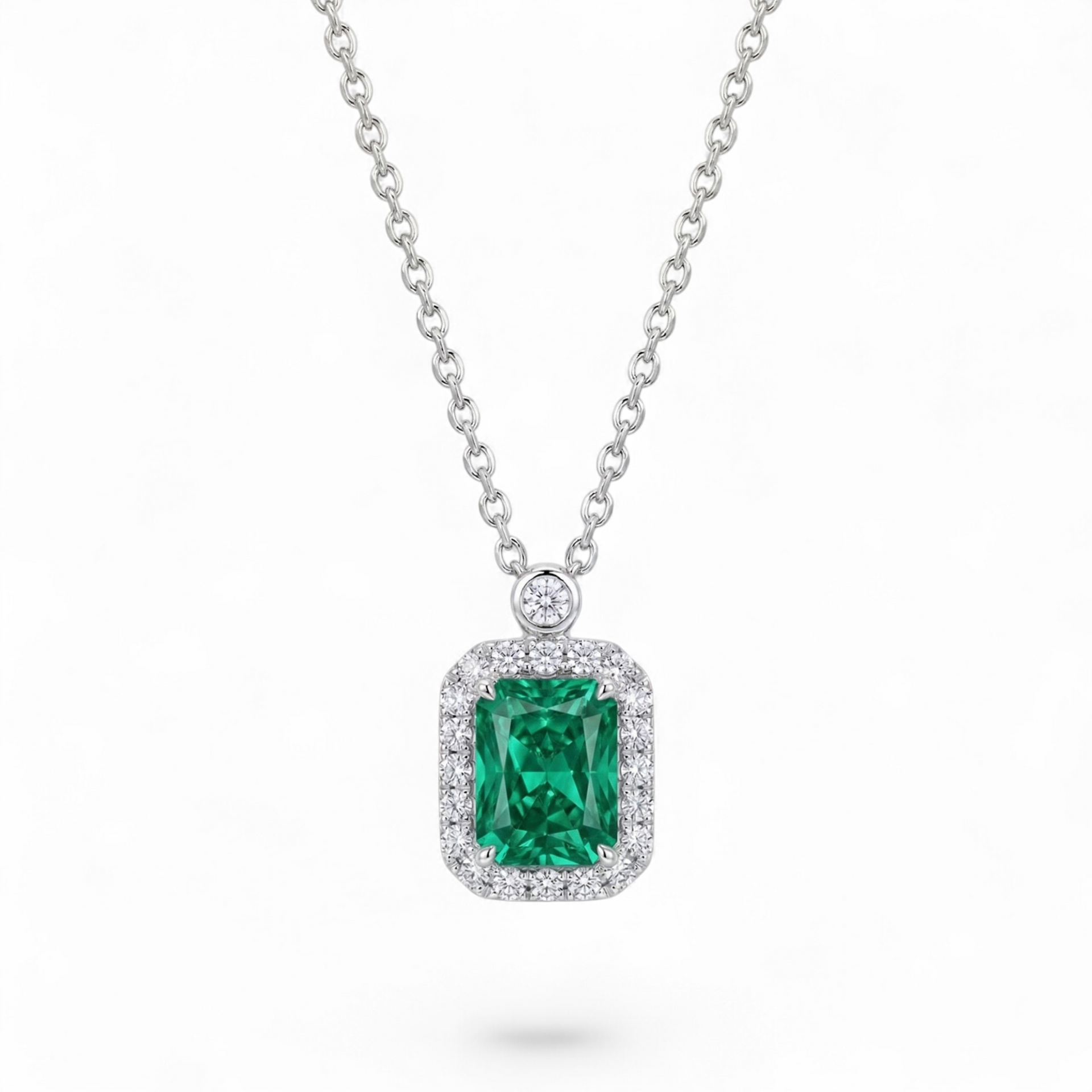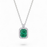 Este set ofrece una coordinación perfecta para eventos de gala, bodas o aniversarios. La combinación del anillo solitario, los aretes de corte preciso y el collar con halo asegura un equilibrio visual que ilumina las manos, el rostro y el escote con destellos de color verde bosque y destellos cristalinos.