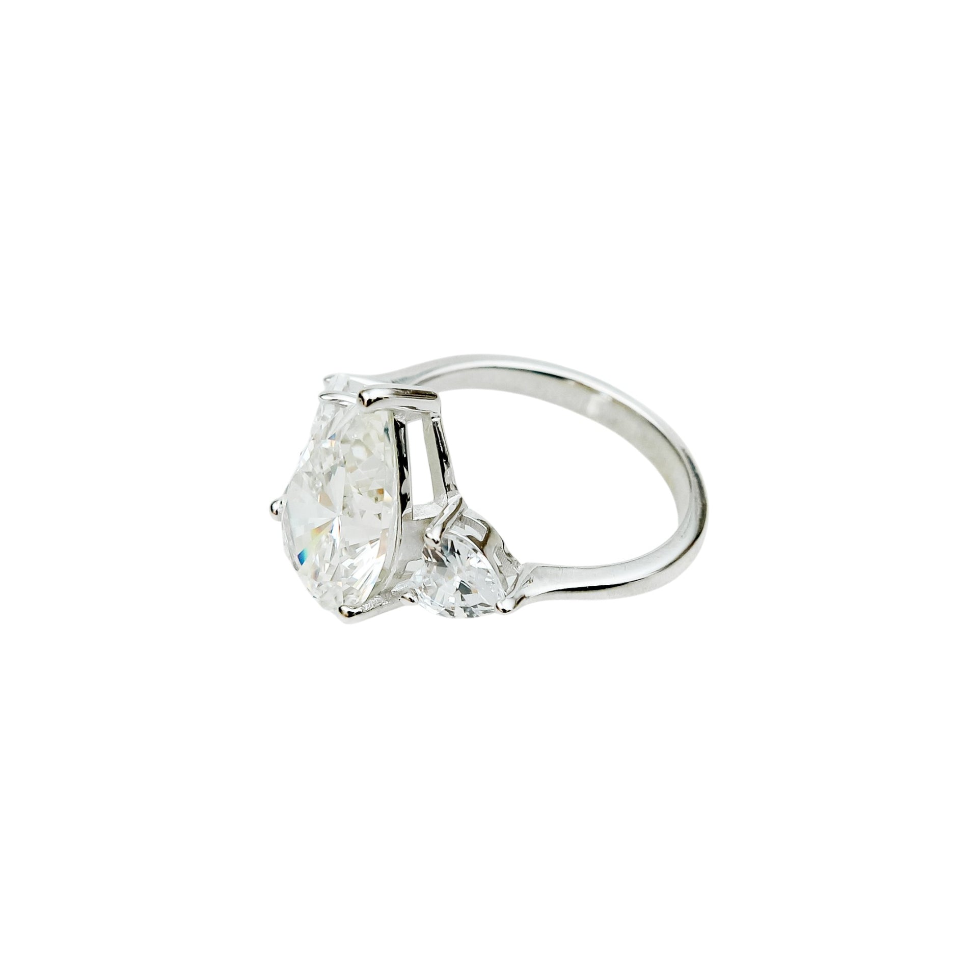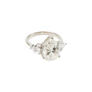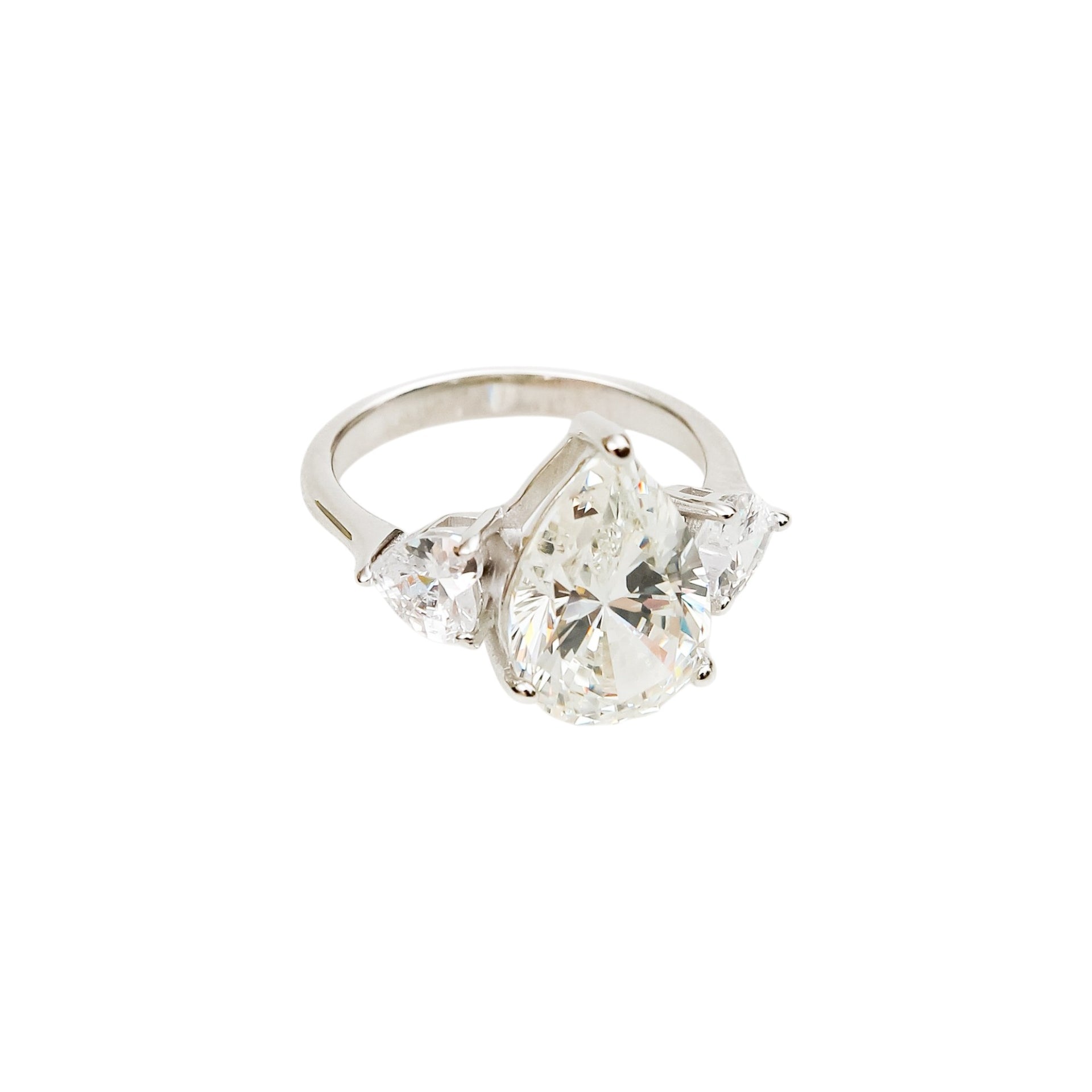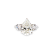 Este anillo cautiva por su diseño refinado con una moissanita una piedra conocida por su brillo excepcional y su semejanza con el diamante. El diseño se complementa con laterales en corte pera, que añaden un destello adicional y realzan la elegancia de la pieza.