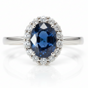 Este anillo deslumbra por la elegancia de su zafiro natural en corte oval de 1.67 ct, enmarcado por el brillo sutil de diamantes naturales con un peso total de 0.28 ct. Montado en oro blanco de 14 quilates, combina lujo y delicadeza en un diseño atemporal