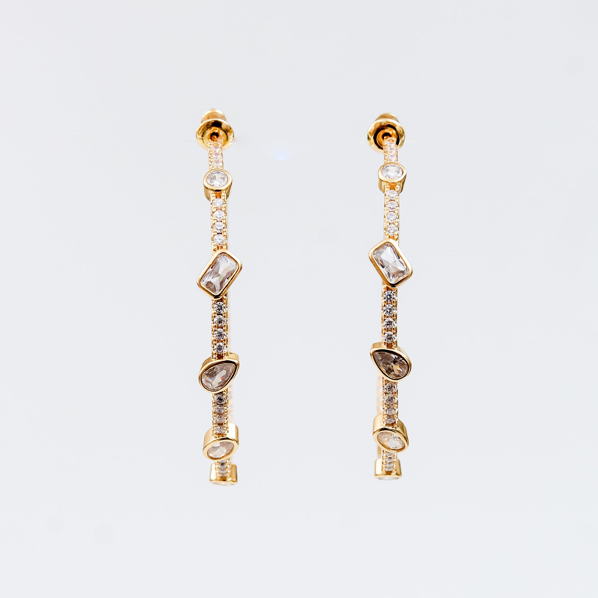 "Semi-Arracadas Brillante 18k con Zirconias Triple A y Cortes Variados"