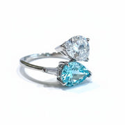 Anillo Tú y Yo en Plata .925 con Blue Diamond y Topacio Blanco