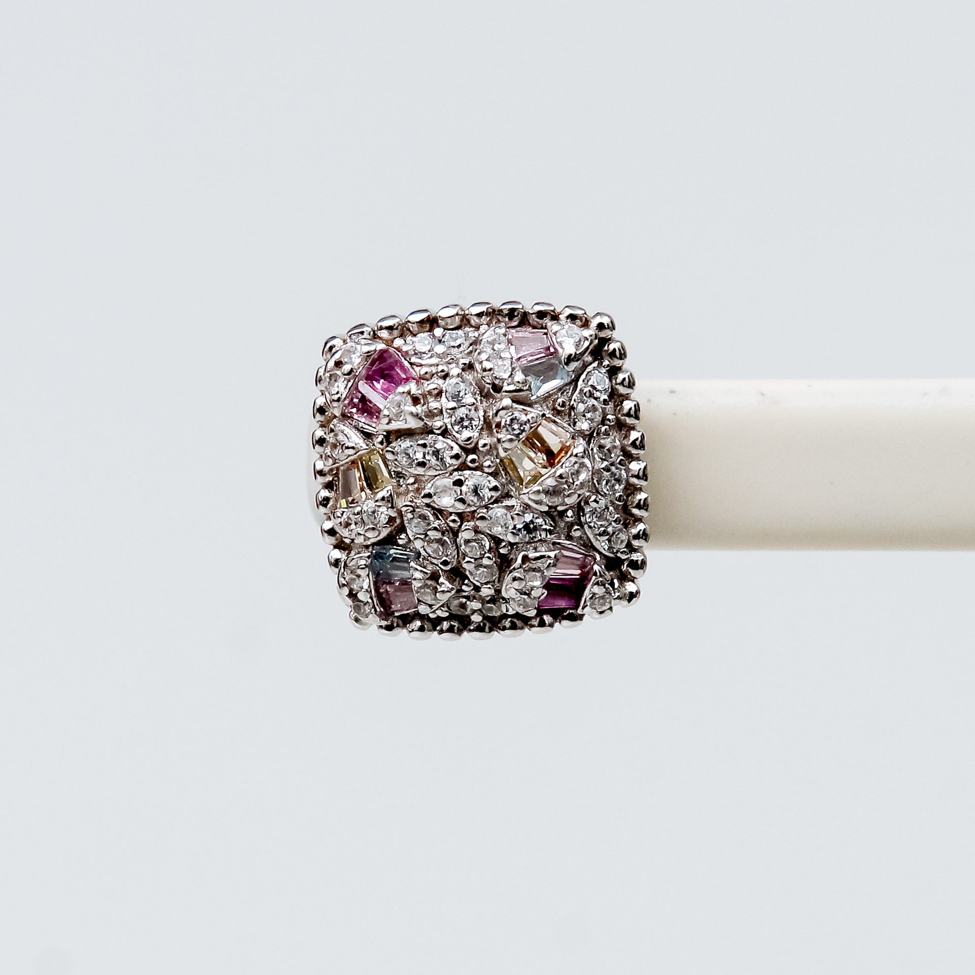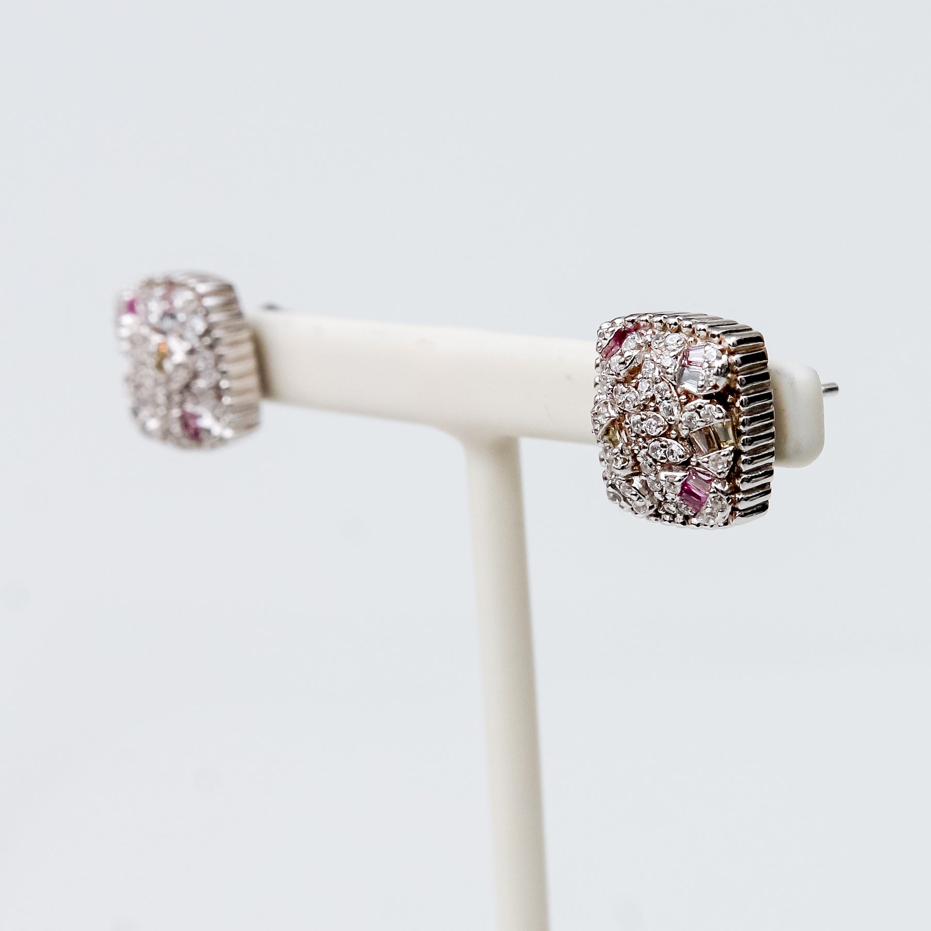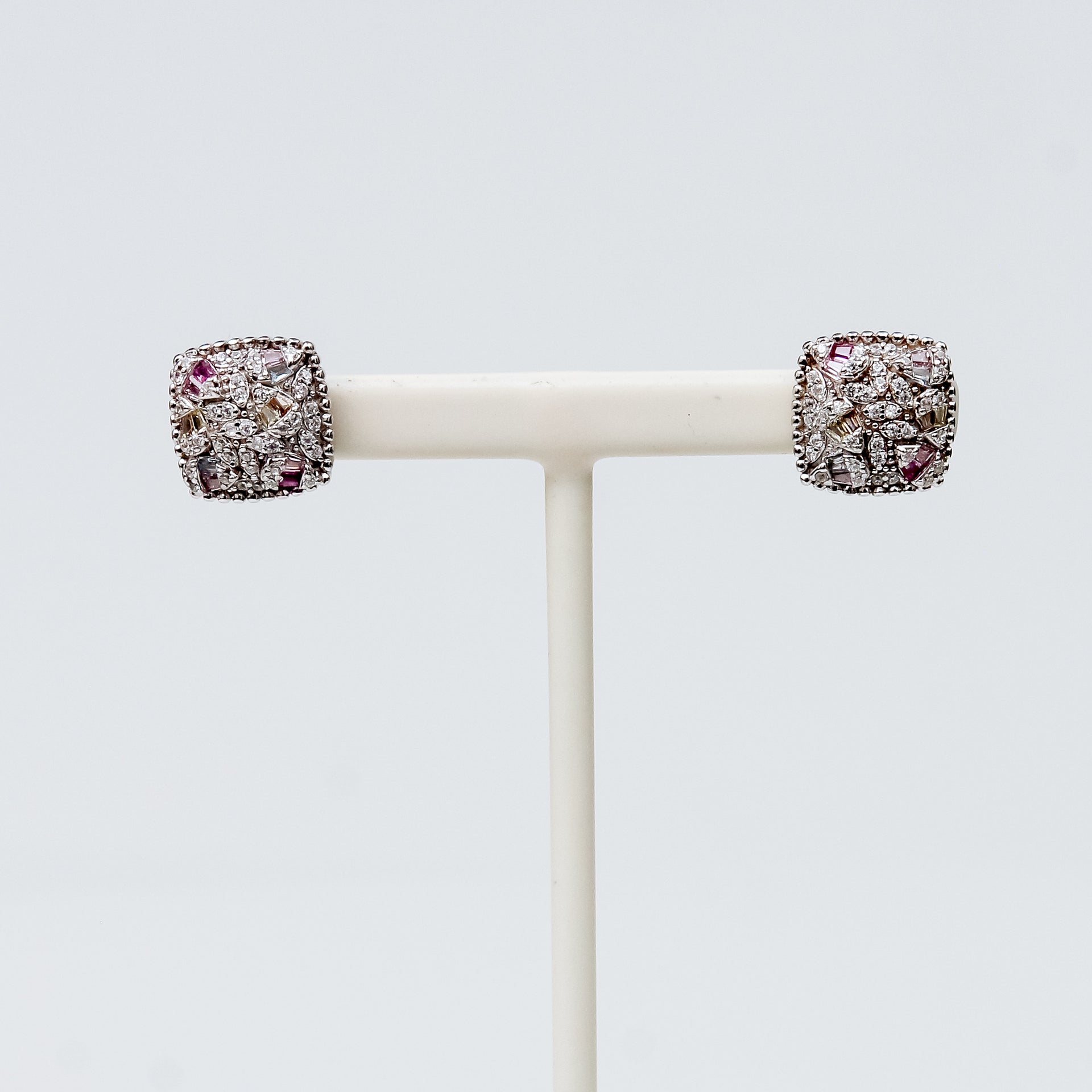Estos elegantes aretes combinan el brillo del topacio blanco con destellos vibrantes de topacios de colores en un diseño cuadrado sofisticado y moderno. Elaborados en fina plata 925 con baño de rodio, ofrecen un acabado duradero y un resplandor excepcional. Su tamaño compacto los convierte en una opción versátil para cualquier ocasión.