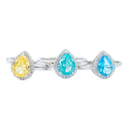 Sumérgete en la elegancia excepcional de este anillo exclusivo, elaborado con meticulosa artesanía en plata 925 y enriquecido con un radiante baño de rodio que asegura un brillo duradero y una resistencia superior. El diseño en forma de gota destaca cuatro deslumbrantes piedras preciosas cultivadas en laboratorio, cada una seleccionada por su belleza única y su intenso color.