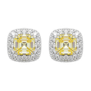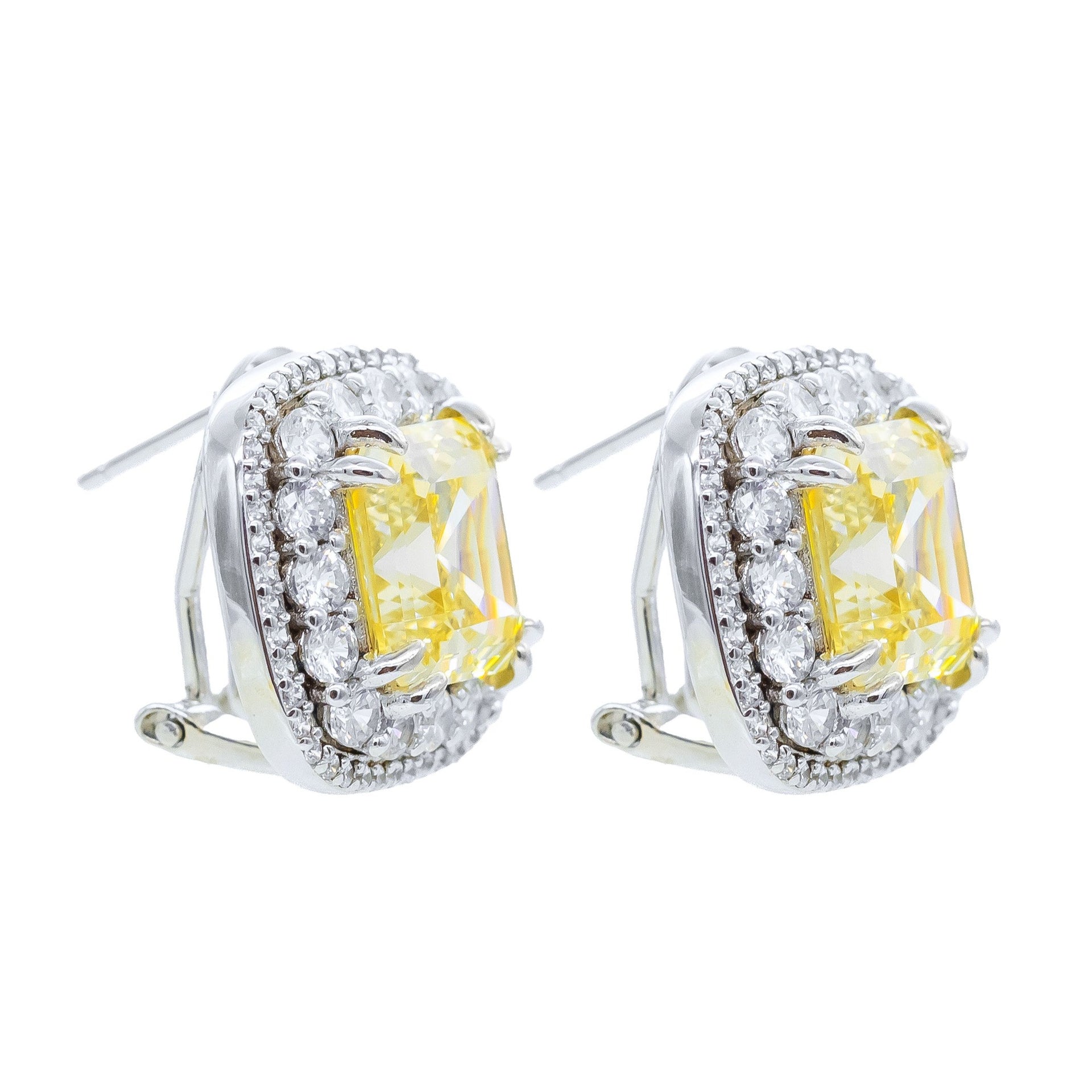 Estos aretes combinan la sofisticación de la plata con la belleza de las piedras preciosas cultivadas en laboratorio, creando una pieza de joyería que resalta por su elegancia y estilo. Estos aretes destacan por su diseño refinado, con un citrino central en corte cuadrado rodeado de un halo de topacio blanco