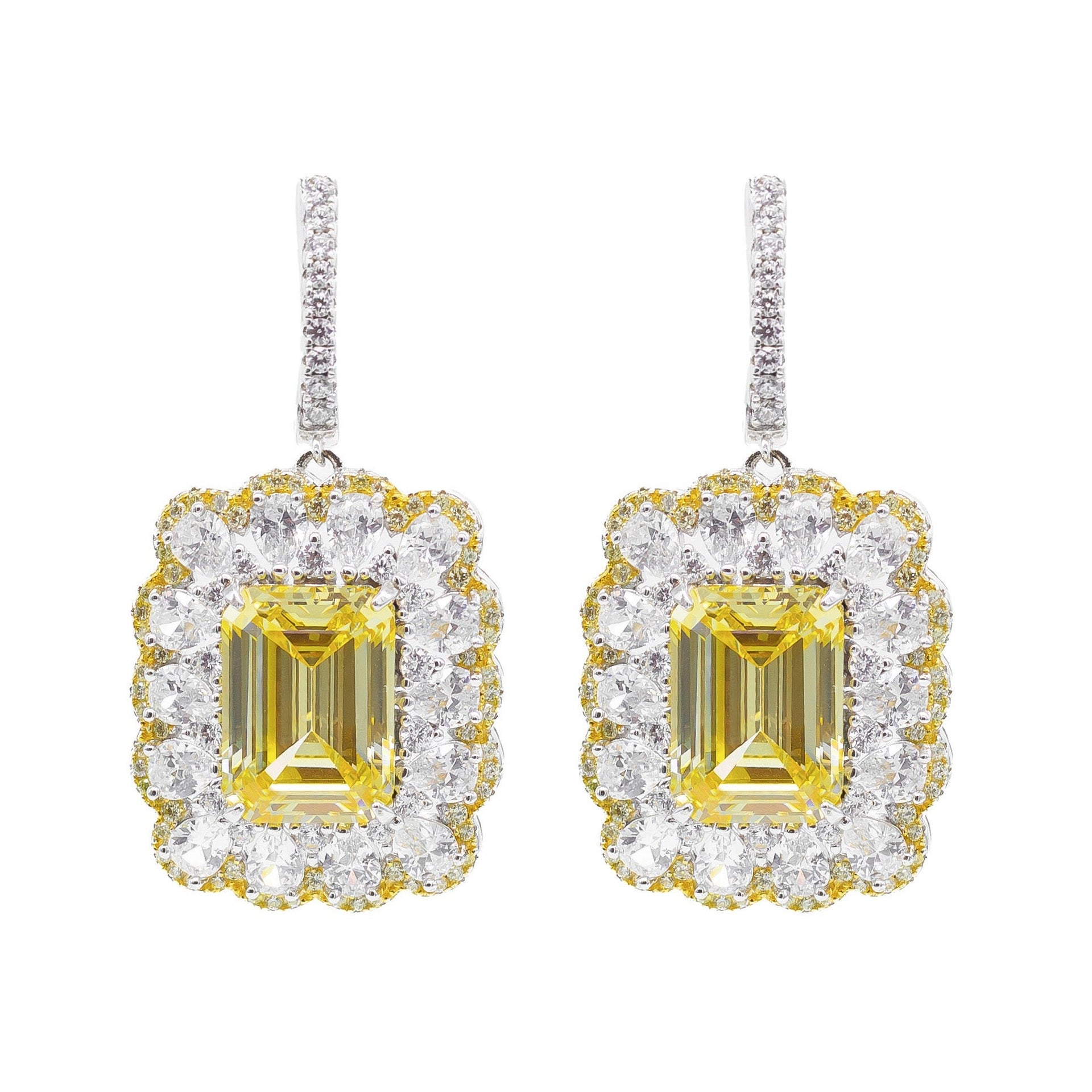 Aretes en Plata .925 Rectangulares con Topacio Canario