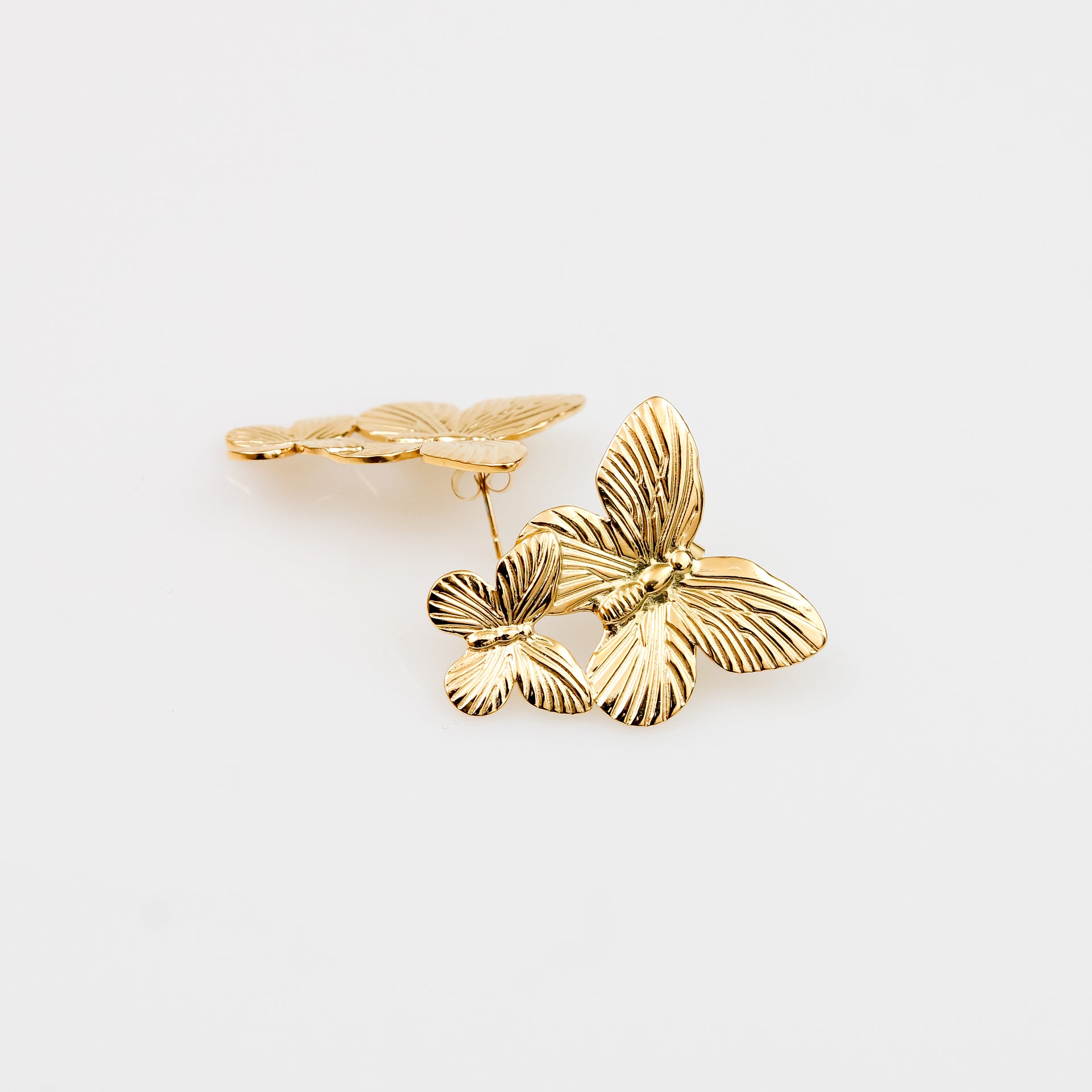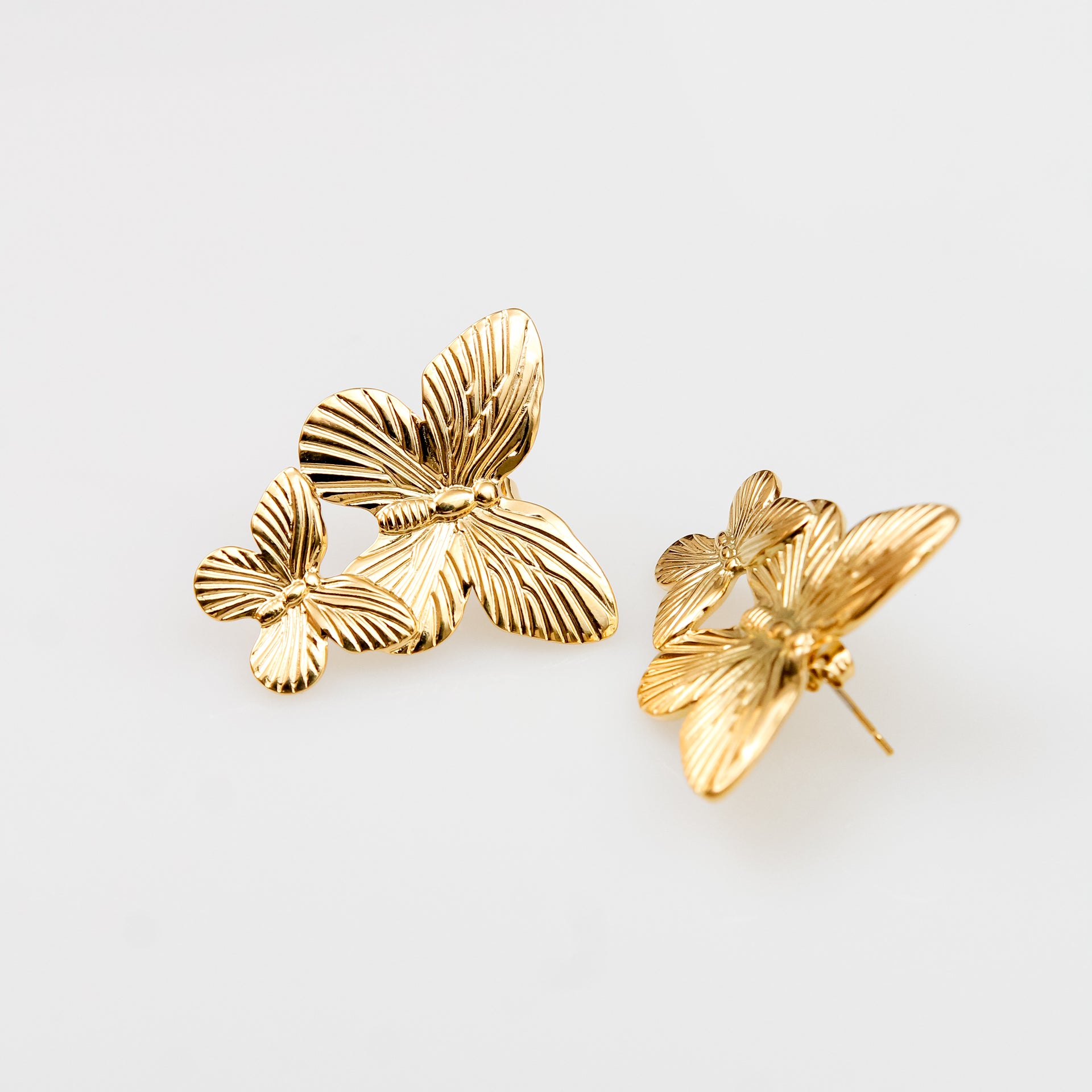 - Diseño de mariposas de diferentes tamaños: Los aretes presentan dos mariposas, una pequeña y una mediana, que crean un efecto dinámico y encantador.