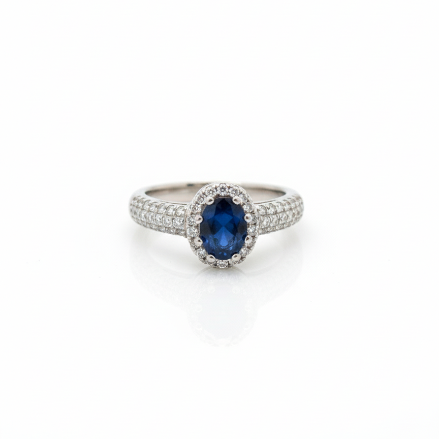• Piedra central: Zafiro en corte oval con montadura de 8 uñas.