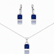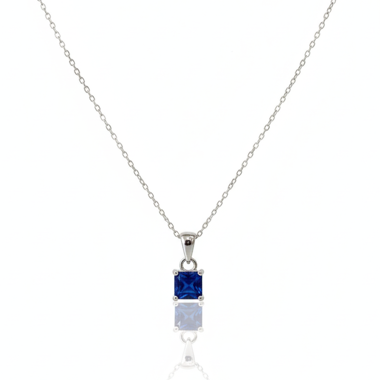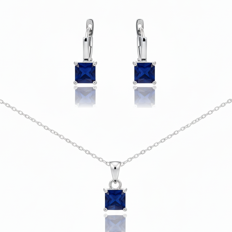 Este delicado set elaborado en plata .925 con baño de rodio destaca por su diseño solitario, limpio y atemporal. Cada pieza presenta un zafiro en corte cuadrado pequeño como protagonista, resaltando su brillo natural y elegancia discreta. El set incluye collar, aretes y anillo, ideales para quienes buscan una joya fina, versátil y armoniosa.
