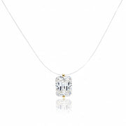 Este sofisticado collar está elaborado con hilo elástico, con broche y extensión en plata .925 con baño de rodio y baño de oro, ofreciendo comodidad, durabilidad y un acabado brillante. Su diseño destaca por un dije rectangular montado con dos uñas en plata .925, engastado con una zirconia 5A, conocida por su alto brillo y apariencia similar a un diamante.