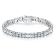 Esta pulsera combina la sofisticación de un diseño clásico con la belleza atemporal de la moissanita en corte esmeralda cada piedra resalta por su brillo único y elegante.