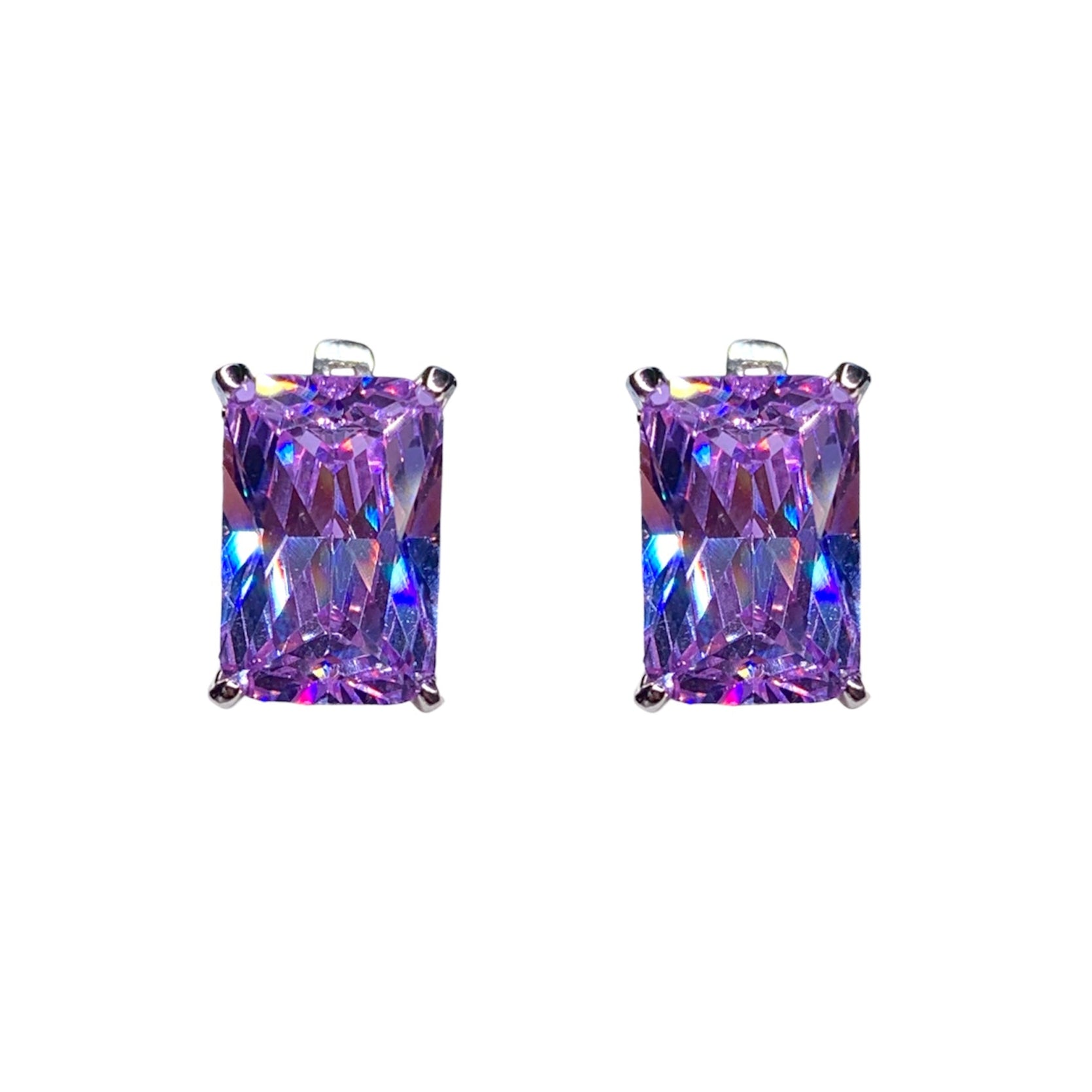 Un diseño moderno con un toque clásico que nunca pasa desapercibido. Estas arracadas están elaboradas en plata .925 con baño de rodio, y destacan por su amatista central en corte esmeralda, montada con delicadeza en cada pieza.