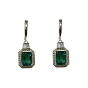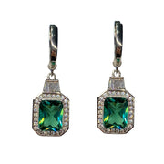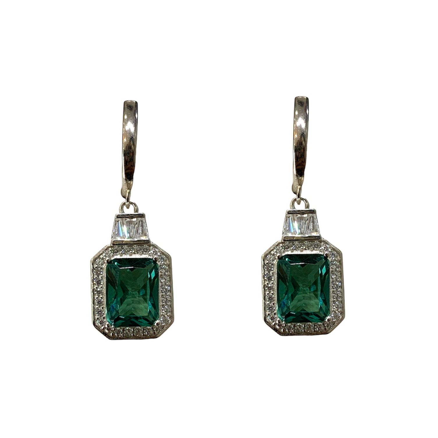 • Aretes: Diseño tipo huggies, rectangulares con central de alejandrita y halo de topacios