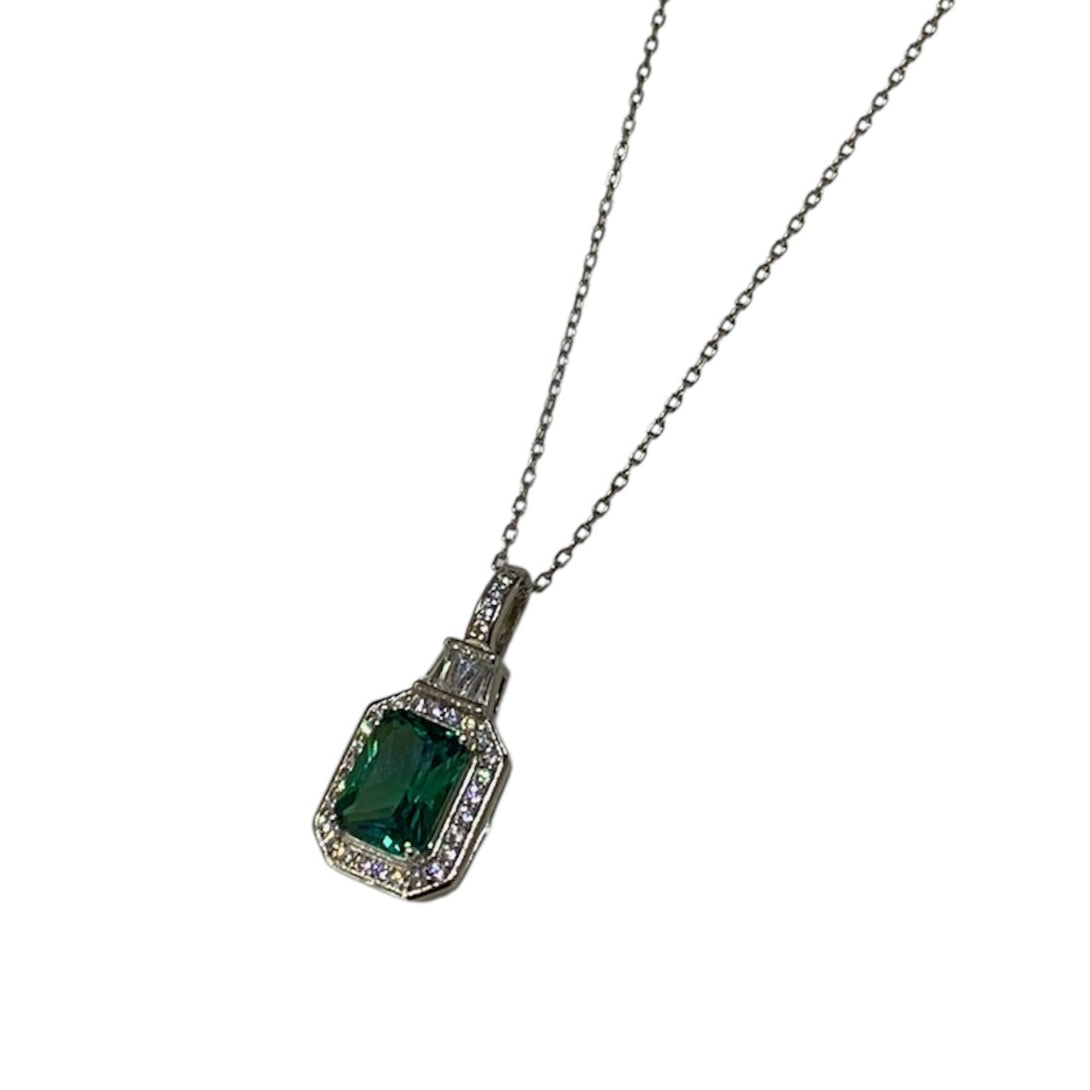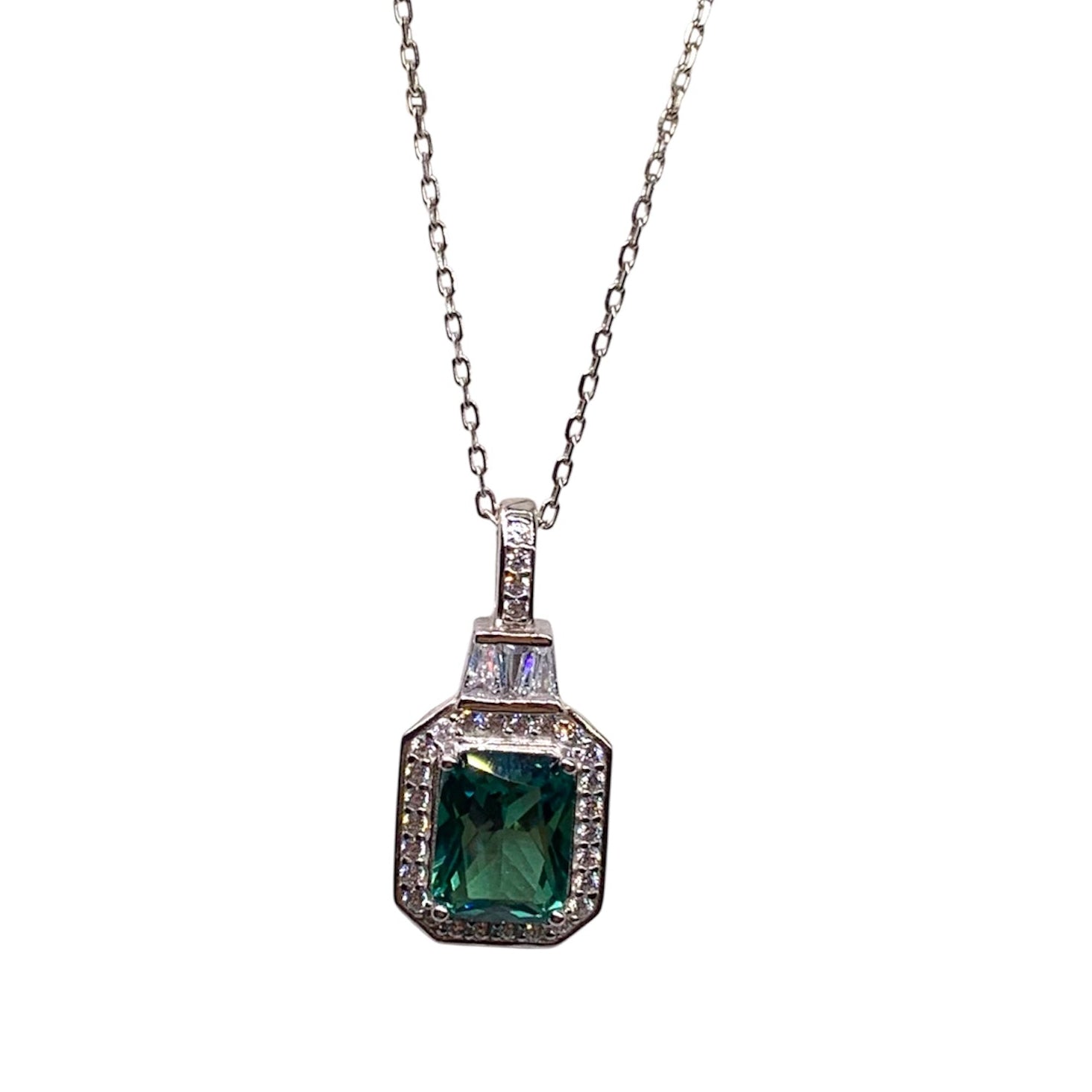 • Collar: Dijes rectangulares con alejandrita central y halo de topacios, cadena incluida