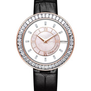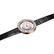 El contraste perfecto entre el misterio y el resplandor. Este reloj de CIGA Design es la máxima expresión de la elegancia clásica renovada. La combinación de la piel negra texturizada con los detalles en oro rosa y el brillo de los cristales crea una pieza de lujo atemporal, diseñada para la mujer que busca un accesorio sofisticado que destaque con autoridad y estilo.