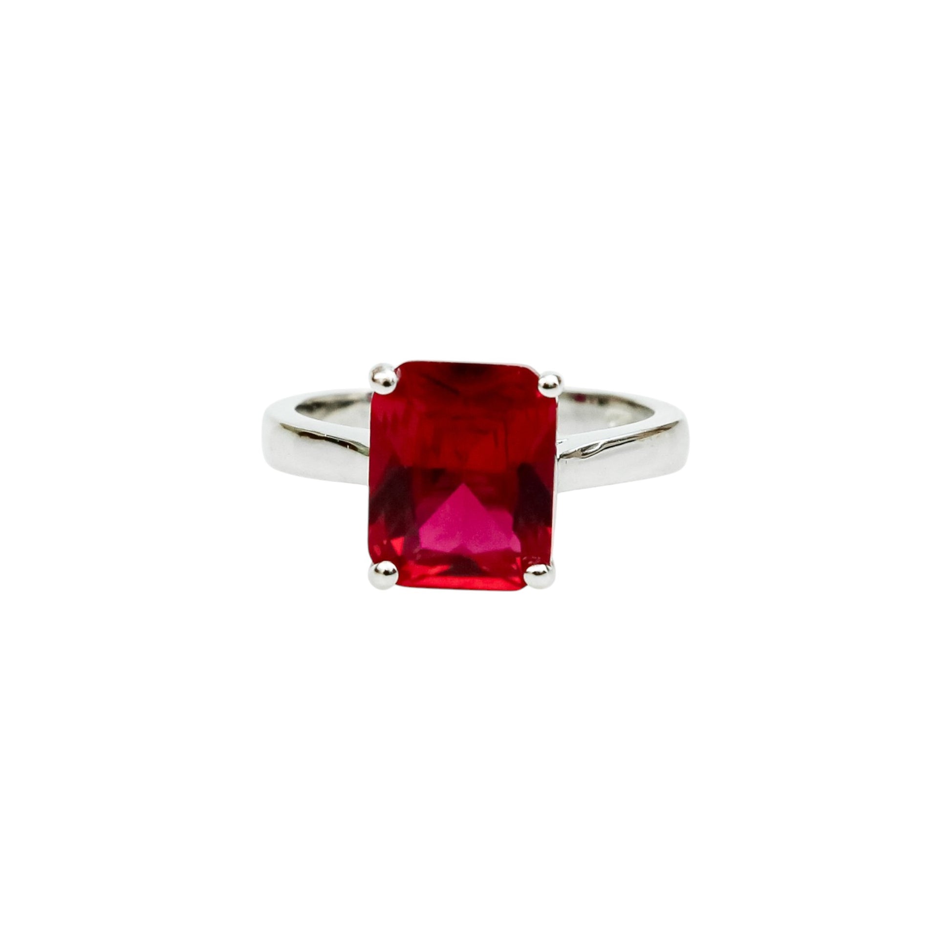 Anillo de Rubí en Corte Esmeralda con Plata .925