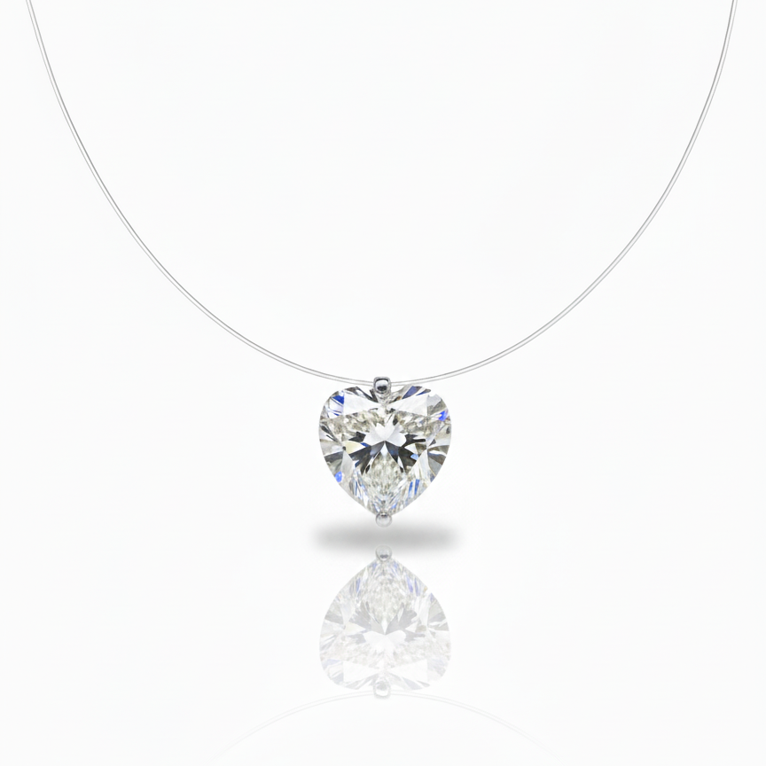 Este delicado collar está elaborado con hilo nylon, combinado con broche y extensión en plata .925 con baño de rodio y baño de oro, logrando una pieza versátil y sofisticada. Su diseño se complementa con un dije en forma de corazón, montado en plata .925 y engastado con una zirconia 8A, reconocida por su brillo intenso y apariencia similar al diamante.